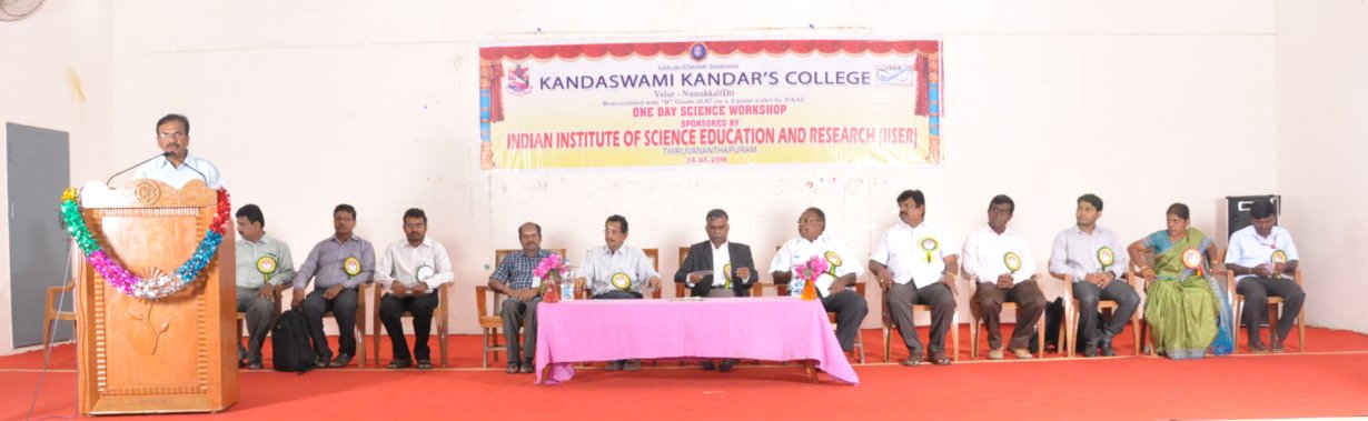 An interaction program with scientists was held at Kandaswamy Kandar’s College, Namkkal, TamilNadu on 24.08.2016. The program aimed at enabling the college students to interact with the faculty members of IISER TVM with a view to improve their scientific knowledge. Prof. V. Ramakrishnan, Director, IISER Thiruvananthapuram, inaugurated the function. Faculty members from IISER Thiruvananthapuram, Dr Ravi Maruthachalam, Dr Arun A, Dr Vinayak Kamble and Dr Ramesh Rasappan delivered lectures and interacted with a group of University/college/School students at Periyar University. Dr N Lathaa at Kandaswamy Kandar’s college coordinated the program.