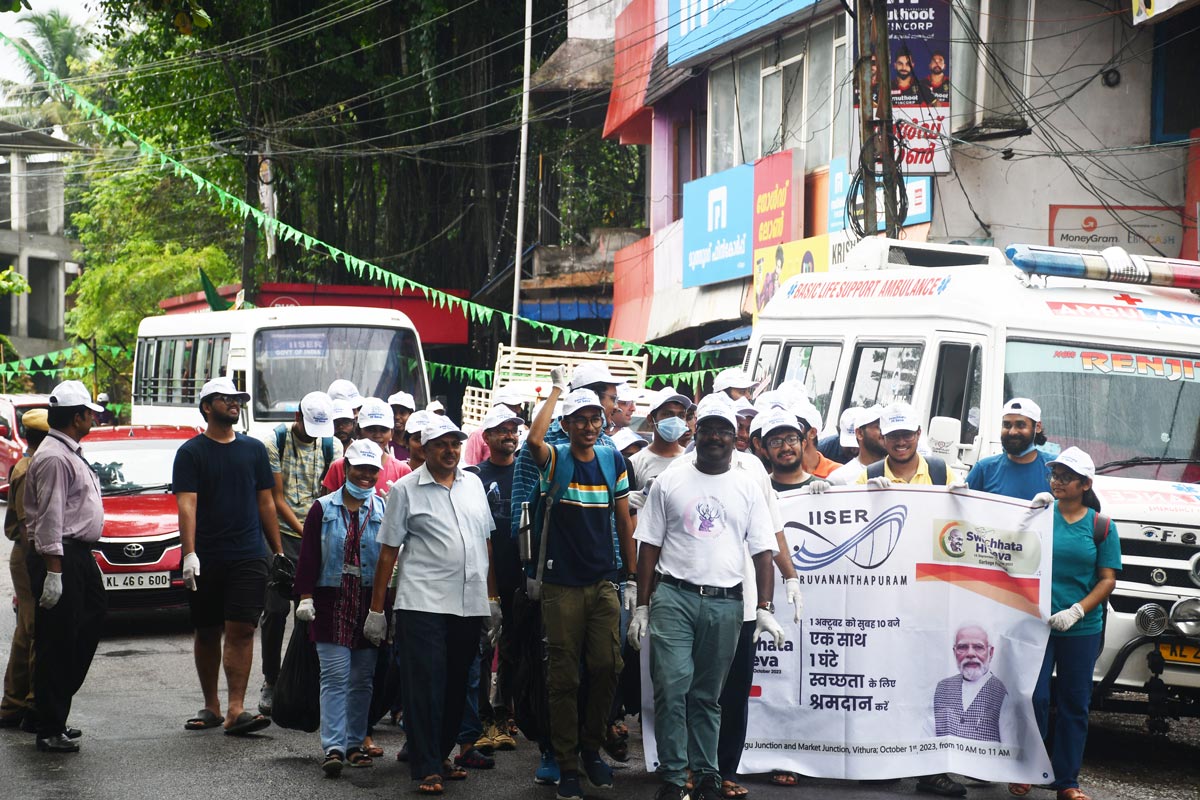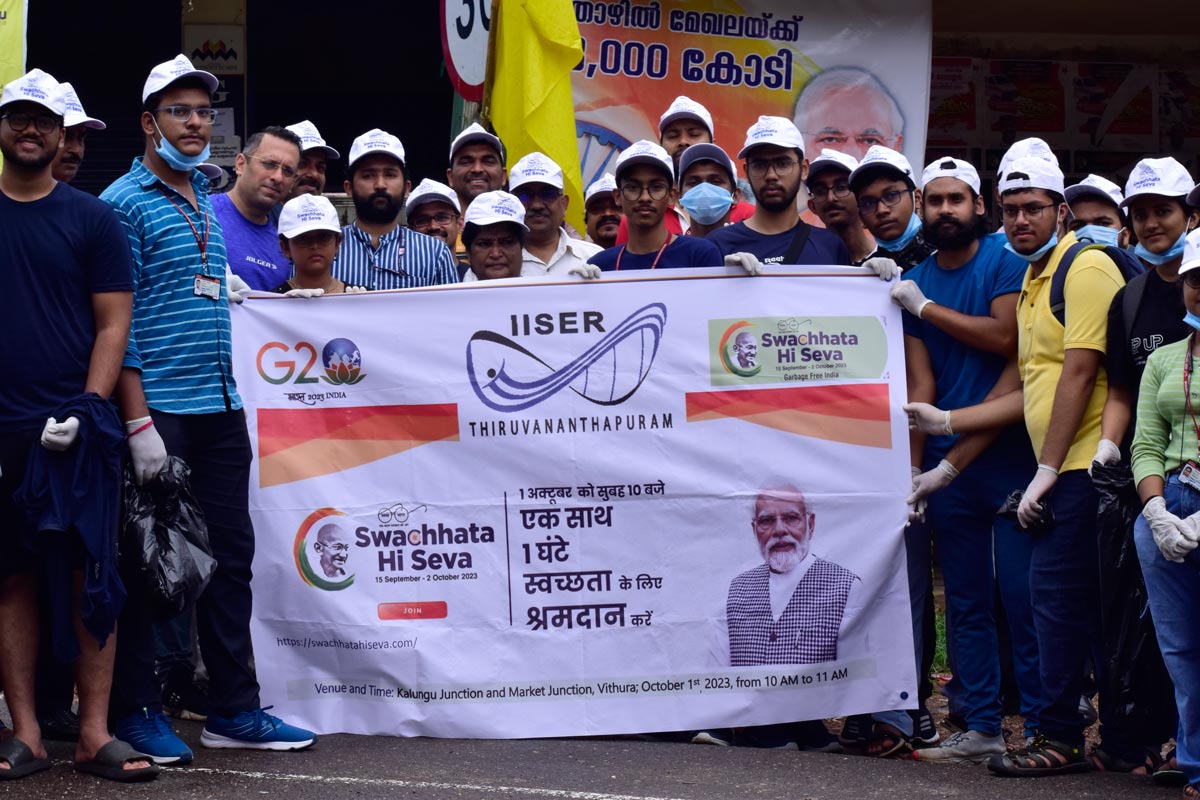 IISER Thiruvananthapuram has conducted the #SwachhataHiSeva2023 at Kalungu Junction in Vithura, Thiruvananthapuram, and cleaned the Kalungu and Market Junctions around 1 km from 9.45 AM to 12 PM on 1st October 2023. The Local Panchayath President and Secretary also joined the event along with faculty, staff, and students.