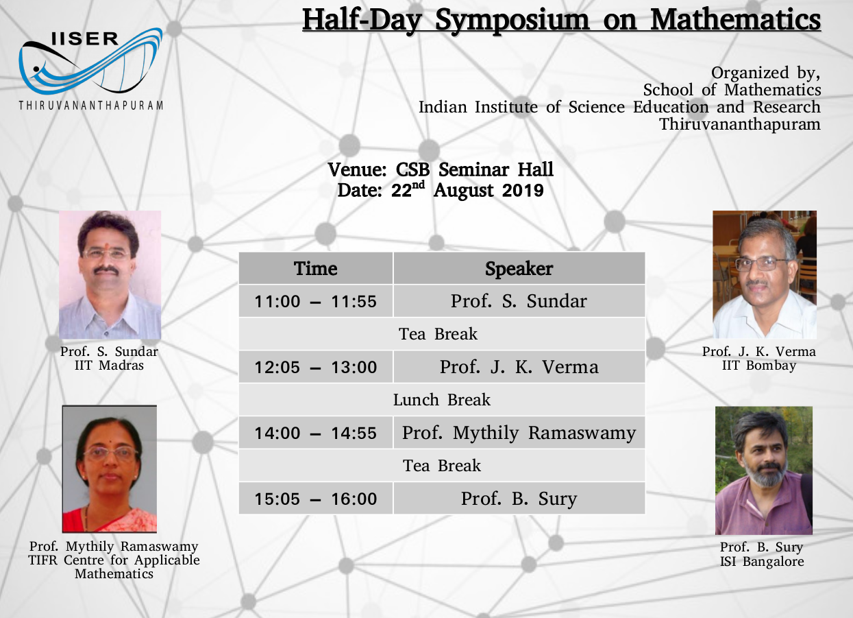 EventThe sixth edition of the IISER TVM Frontiers Symposium in Mathematics (FSM 2026)