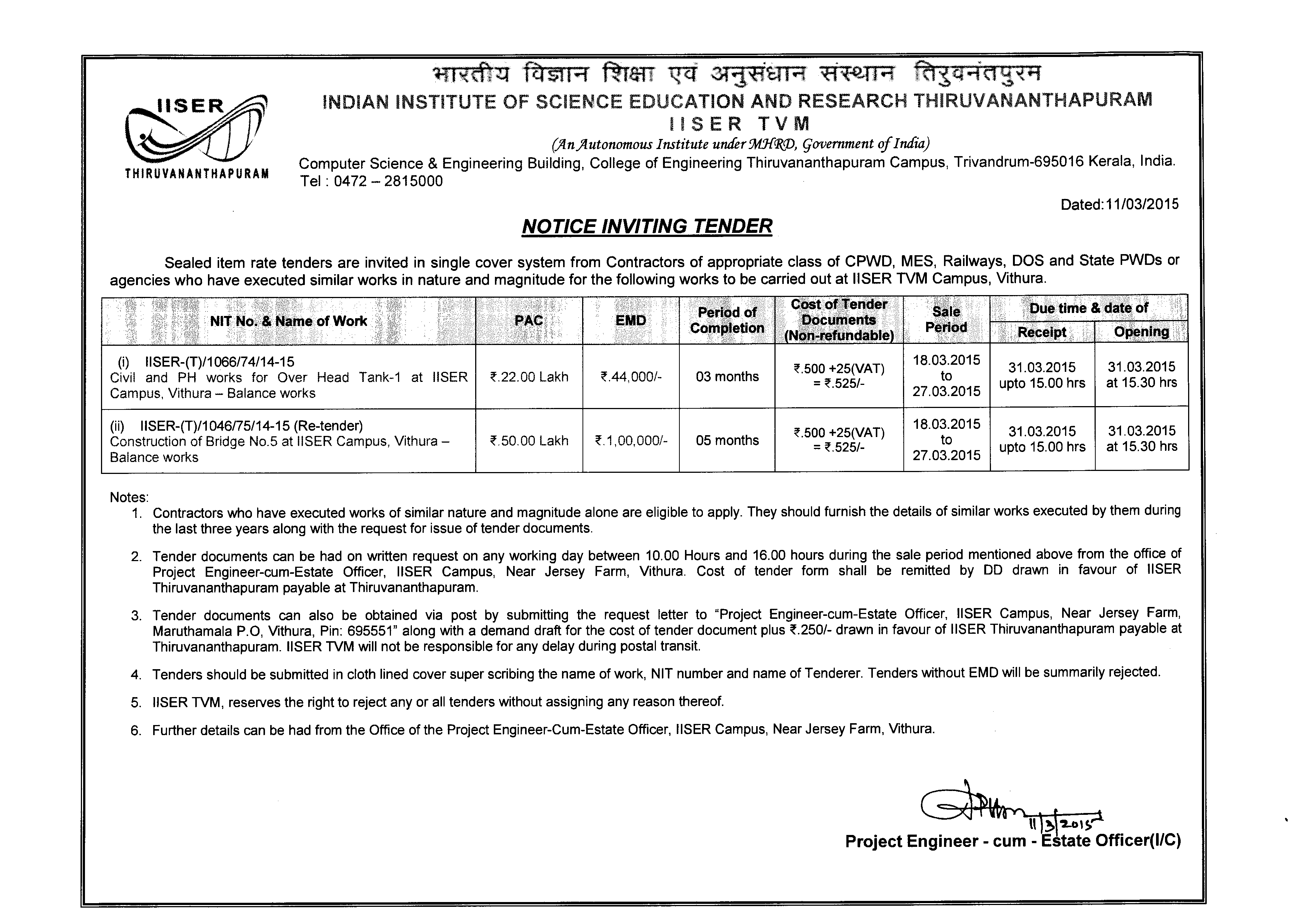 Sealed item reate tenders are invited in single cover system from contractors of appropriate class of CPWD, MES, Railways, DOS and State PWDs or agencies who have executed similar works in nature and magnitude for the following works